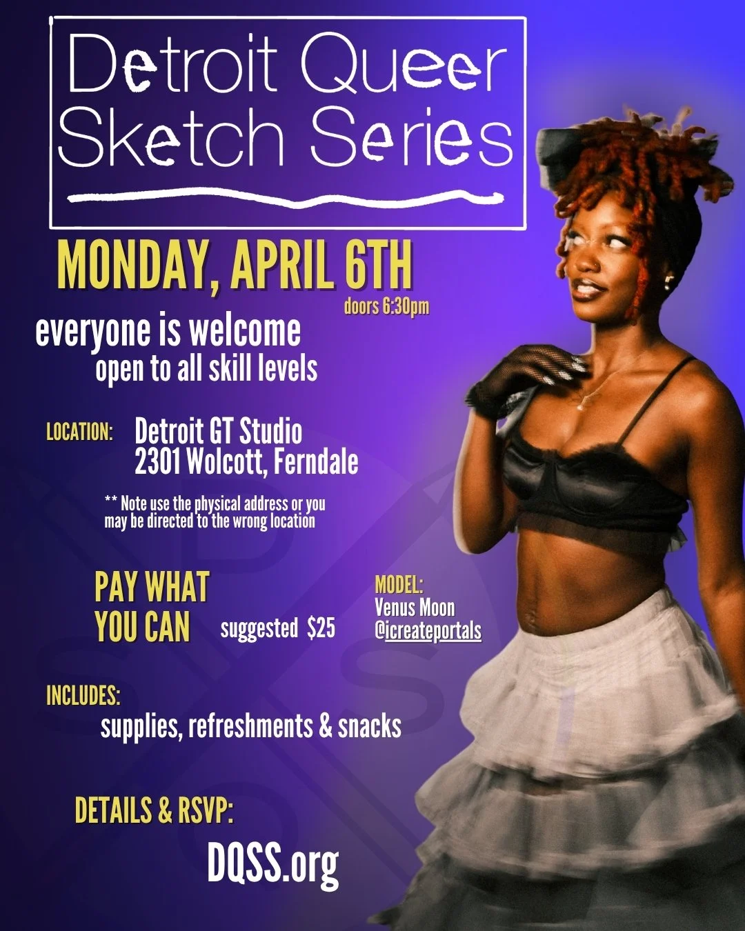 Detroit Queer Sketch Series is all about good vibes, great art, and awesome people! Come hang out, sketch some amazing models, and take plenty of snack-and-social breaks.